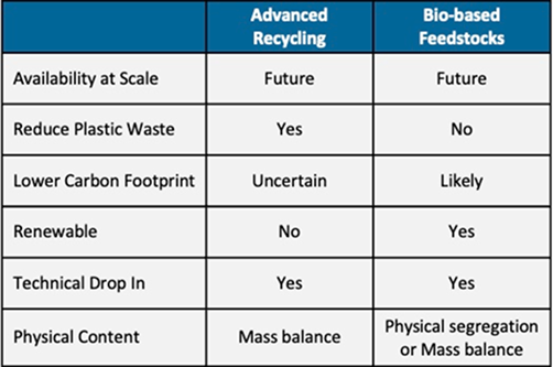 As the industry explores both advanced recycling and bio-based feedstocks, the comparison chart illustrates key distinctions. Advanced recycling supports circularity by reducing plastic waste but has uncertainty around carbon benefits and scalability. In contrast, bio-based feedstocks provide a more renewable pathway and are more likely to result in carbon reductions—though they rely on future scalability and new sourcing methods. Advanced Composites continues to invest in both pathways, giving our partners sustainable choices without sacrificing performance or reliability.